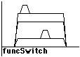 In the switch statement, the x-axis represents the default action, and each case statement is shown by a raised line. The two briefly raised lines represent the if statements within case 1 and case 3.