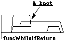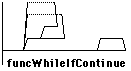 In the while loop, the x-axis represents the path straight through the function as though the while loop had not been executed. The solid raised line shows the path of the while body. The dotted line shows the loop to the beginning of the while statement.